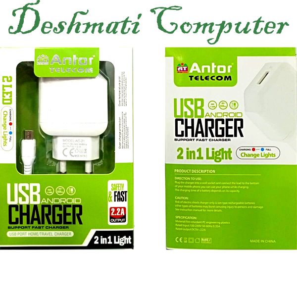 Antor 2.2A Type B/ Typc Fast Charger With 1M Long Charging Cable Fast Mobile Charger